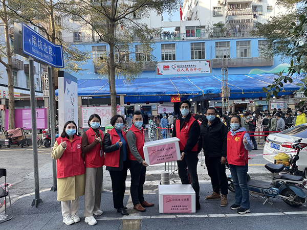 廣東燦城農(nóng)產(chǎn)品集團(tuán)有限公司創(chuàng)始人林育英女士看在眼里疼在心里,2月27日下午15:00-16:00,連著幾天在林育英女士帶領(lǐng)下,燦城同事前往龍崗區(qū)坂田街道、四季花城社區(qū)、萬(wàn)科城哥倫布廣場(chǎng)檢測(cè)點(diǎn)、萬(wàn)科城南門檢測(cè)點(diǎn)、中海日輝臺(tái)(貝爾路地鐵 A出口)檢測(cè)點(diǎn)等二十余個(gè)檢測(cè)點(diǎn)派送愛心湯圓,給各站點(diǎn)防疫工作人員送上溫暖。