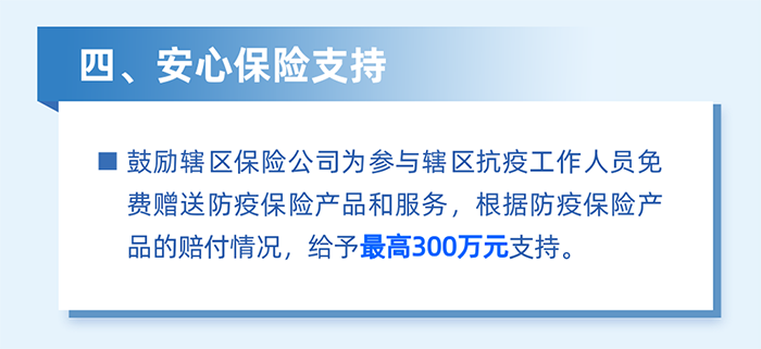 實施防疫保險補(bǔ)貼。對2022年3月1日至5月31日期間,購買防疫保險產(chǎn)品和服務(wù)的企業(yè),按照實付保費(fèi)的50%予以支持,單家企業(yè)最高5萬元。(牽頭單位:區(qū)金融工作局)