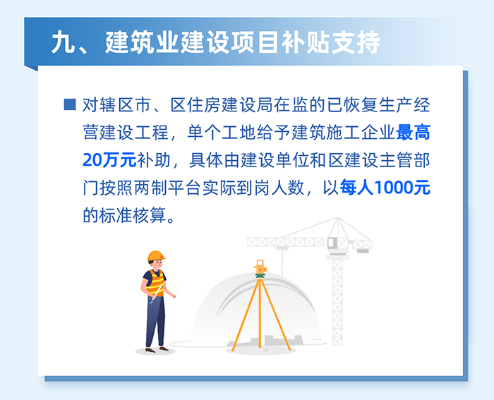 7.南山區(qū)范圍內(nèi)已開工的工程項目,于2022年3月12日至2022年3月31日期間,因配合疫情防控工作需要被實施封閉式集中管理的,按集中居住在生活區(qū)的勞務(wù)工人人數(shù),以1000元/人的標(biāo)準(zhǔn),給予施工總承包單位補(bǔ)貼。(責(zé)任單位:區(qū)住房建設(shè)局)
